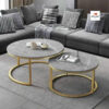 Và nếu bạn thích phong cách hiện đại – tối giản, mẫu bàn trà đôi tròn mặt vân đá trắng chân sắt đen chính là lựa chọn rất “đúng gu”.