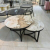 2) Giới thiệu sản phẩm: Bộ bàn trà đôi tròn mặt vân đá trắng – chân sắt sơn đen